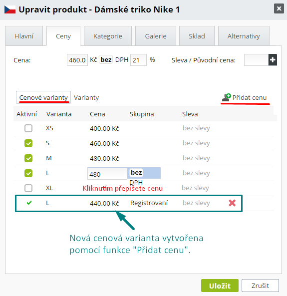 3. Nastavte cenové varianty pro produkt.