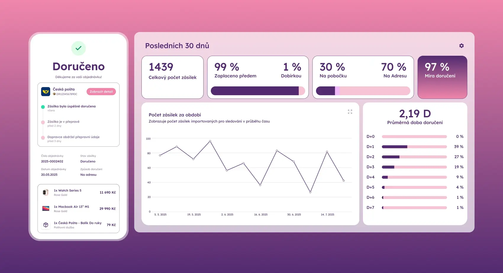 → Automatické notifikace snižují dotazy typu „Kde je moje zásilka?"